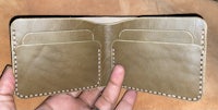 Modern minimalist billfold, fully saddle stitched by hand in a medium tempered premium vegetable tanned leather