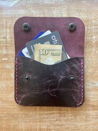 Classic cardholder with a refined finish. The 2Pac (pictured) has a center pocket and a front pocket. The 3Pac has an extra pocket on the back. Fully saddle stitched by hand for a durable and elegant finish.